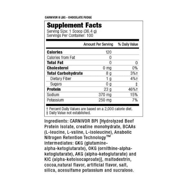 A través de unos cmoplejos procesos de extración, clarificación, hidrólisis y aislado la proteína pura de carne de Carnivor™ se entrega a los tejidos musculares para construir músculo, para sentir el poder de la carne con más aminoácidos que cualquier otra fuente protéica usada en suplementos, incluidos: aislado de leche, soja, leche o huevo. Carnivor™ es un 350% más concentrada que cualquier otra fórmula y más efectiva en la construcción muscular, ¡más que un filete de solomillo!