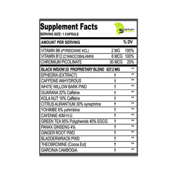 Black Widow contiene 25 mg de Thermo-Z extracto de efedra, está diseñado para los fans incondicionales de los estimulantes y energía extrema. Además de promover el aumento de la energía, es también un buen quemador de grasa, y también trabaja para mejorar notablemente el estado de ánimo (nos hace sentir bien) .